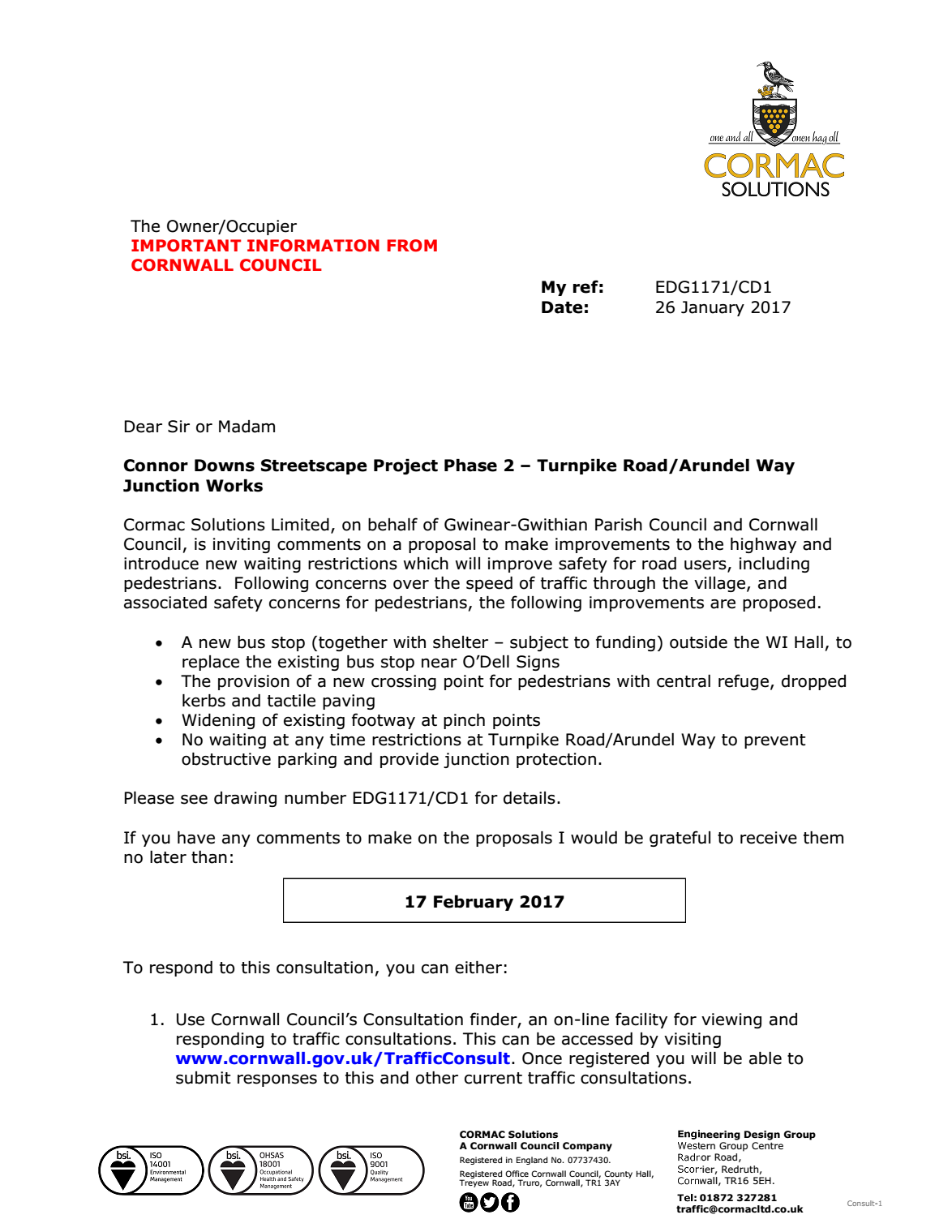 170126 | Consultation Connor Downs - Turnpike Road/Arundel Way Junctions Works - Streetscape Projects Phase 2 (EDG1171/CD1) (Reg