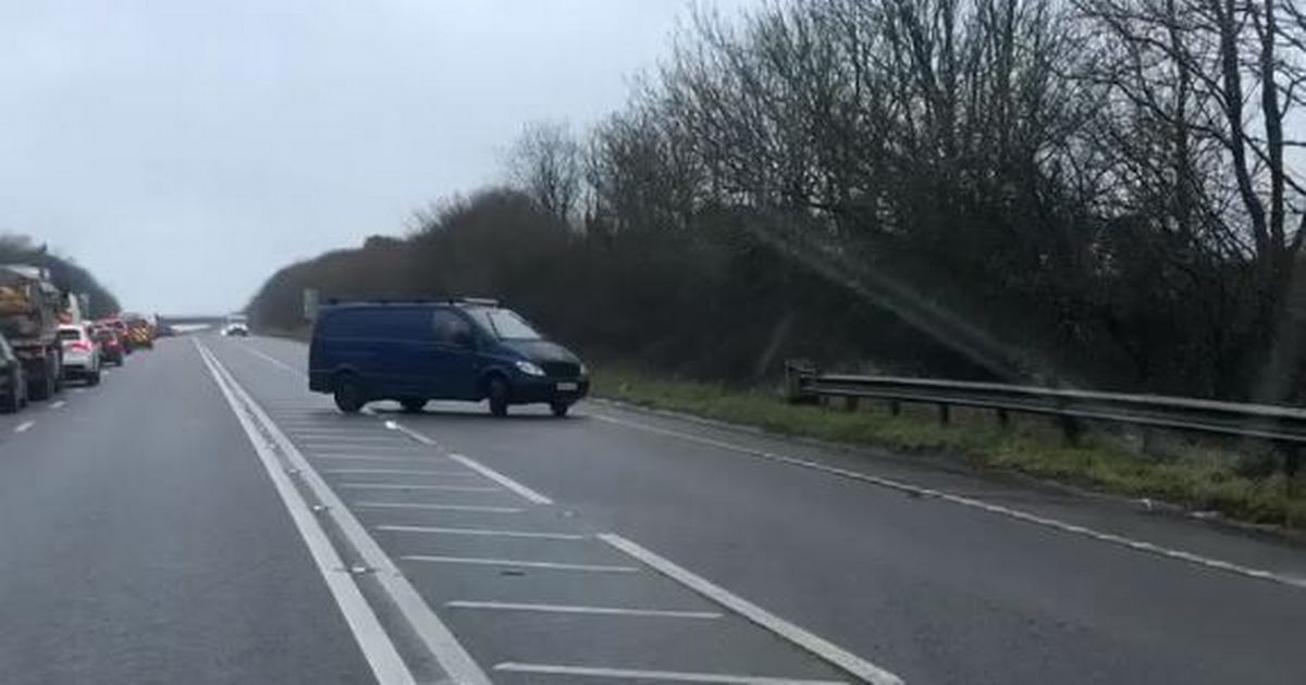 The driver of the dark blue transit van performed the turnaround on the Hayle bypass yesterday (February 17) in a queue of traffic at around 1.50pm.