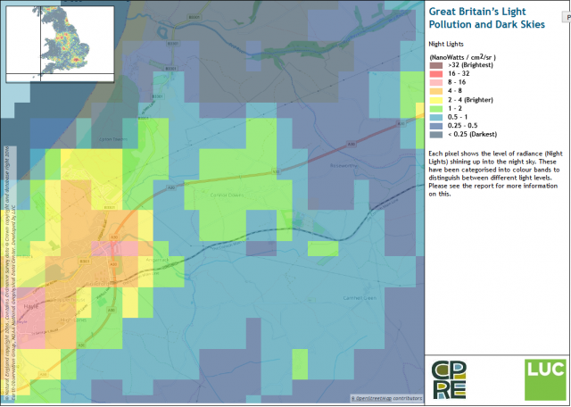 A report ‘Night Blight: Mapping England’s light pollution and dark skies’ has been produced by CPRE, which summarises the results of the maps nationally and makes recommendations to Government, local authorities, Highways England and others with the aim of reducing light pollution.