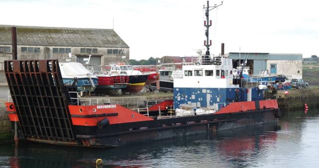 "Arromanches" Panamanian Registered vessel moored at East Quay, by Baumbachs, Hayle. According to Internet is normally a Falmout