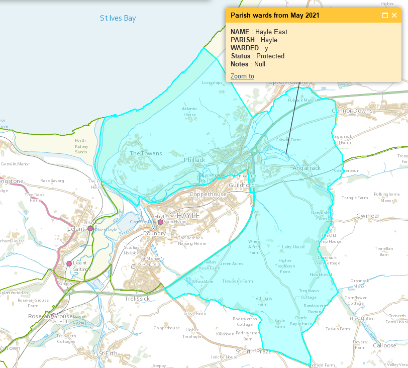 Note: A councillor can stand and represent any ward in the Hayle Area, not necessarily where they live or work. The Council elected in May will serve until the first week of May 2025 (a 4 year term of office).
