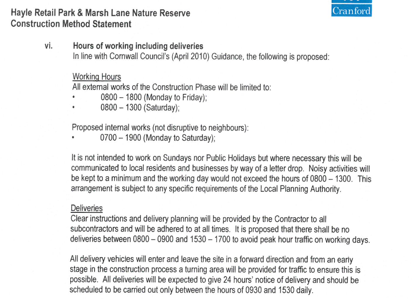 pursuance of the Environmental Code of Construction Practice and taking into