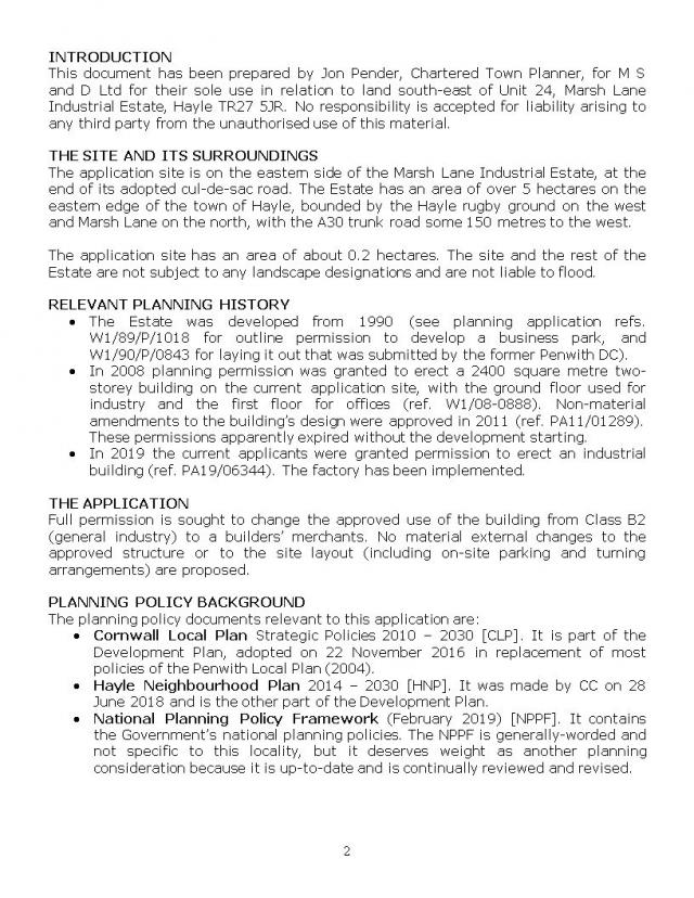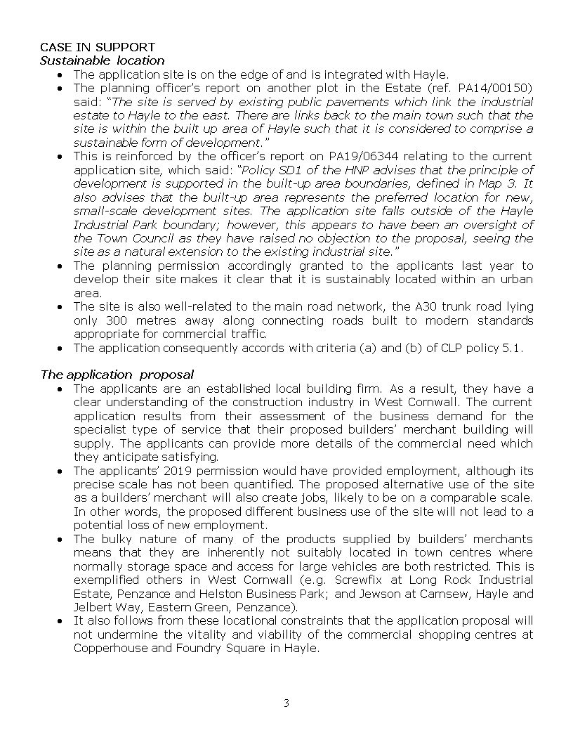 PA20/03108 | Proposed change of use from industrial building to builders merchant. Building is being constructed. | Land SE Of Unit 24 Marsh Lane Industrial Estate Hayle TR27 5JR