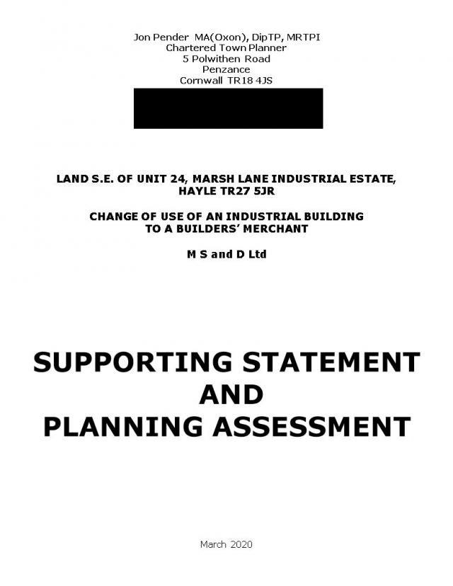 | 08 Apr 2020 | Statement - Planning | | SUPPORTING STATEMENT AND PLANNING ASSESSMENT | |