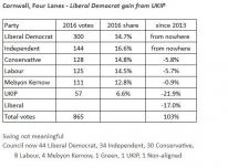 Cornwall, Four Lanes - Liberal Democrat gain from UKIP