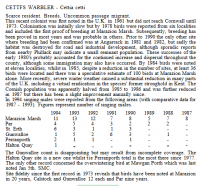 - 1994 | CETTFS WARBLER - Cettia cetti at Angarrack in 1981 and 1982, but sadly the habitat was destroyed for road and industrial
