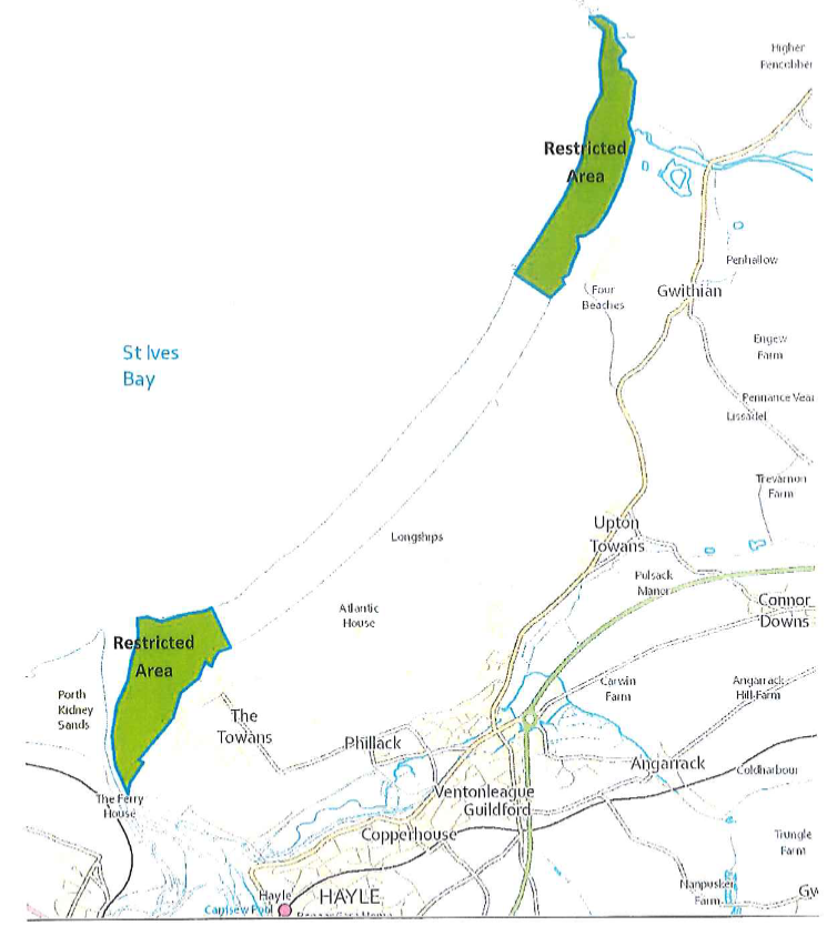 | Penzance Harbour to Marazion (See link to maps below to show the defined area) | 1 July – 31 August | 10am – 6pm |