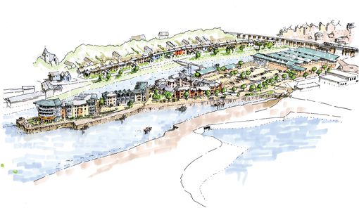 Key elements included 870 homes – including 175 affordable – two hotels, a marina and sailing club, a new fishing harbour, thousands of square feet of business, industrial and commercial space and a combined business centre, college and health centre.