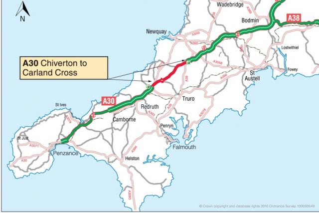 After the work is completed on the Carland Cross to Chiverton section, the A30 will be dualled for 100 miles from the Roseworthy dip just west of Camborne up to the M5 junction at Exeter.
