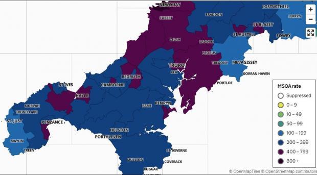 Areas with some of the highest figures are Hayle with 66 cases (up by 37 cases) and Truro, which has a combined 148 cases in its three cluster areas: Truro West with 41, Truro South & Central with 51 and Truro East with 56.